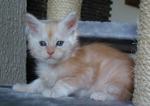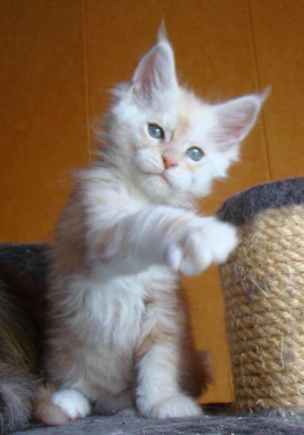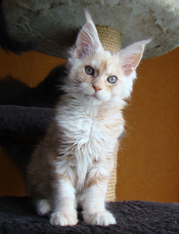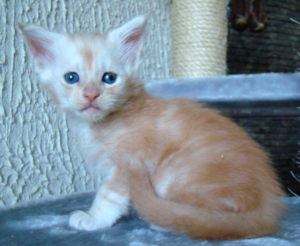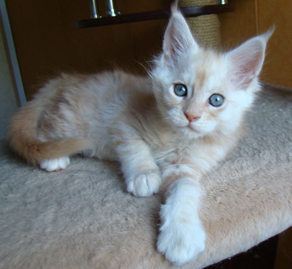 не ранее 3 месячного возраста. Если Вы хотите приобрести котенка породы мейн- кун,
