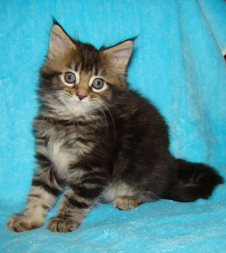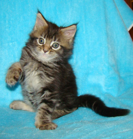 Мейн кун Catsvill County Honey, окрас черный мраморный n 22 дочь Saboteur from Mystical Cats и Catsvill County Dushess
