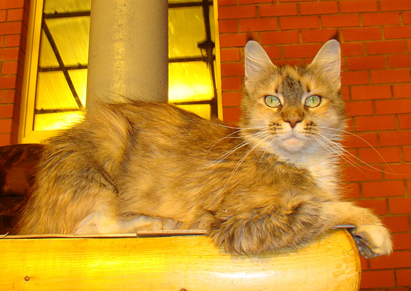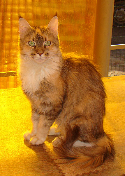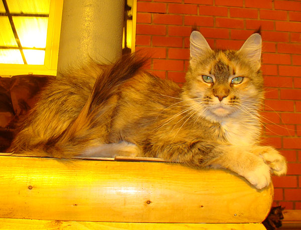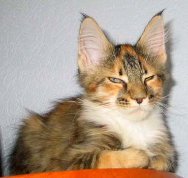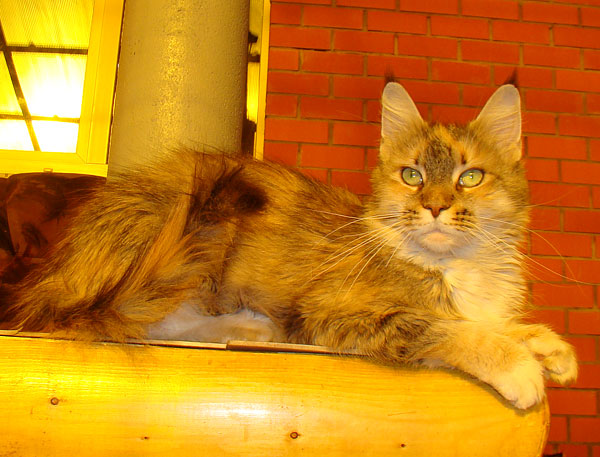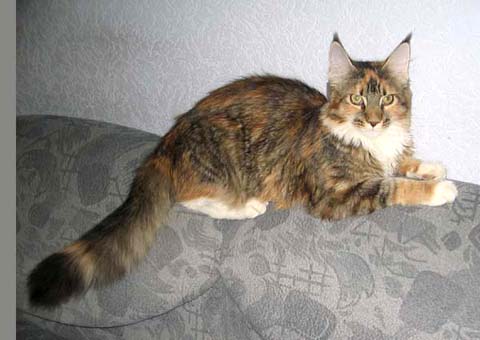 Эта кошечка яркий представитель породы Мэйн-кун, как по внешнему виду, так и по характеру.